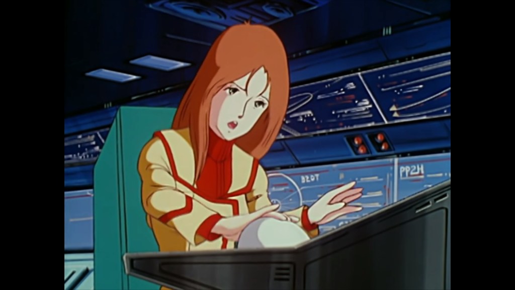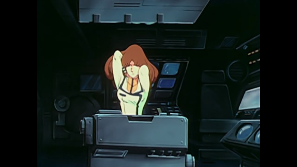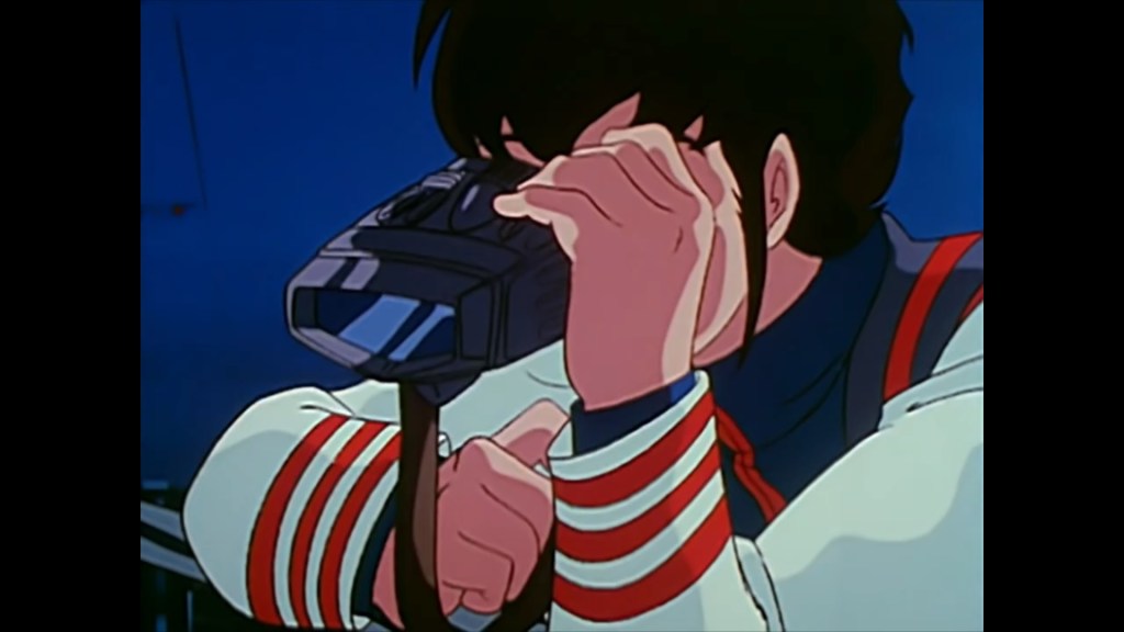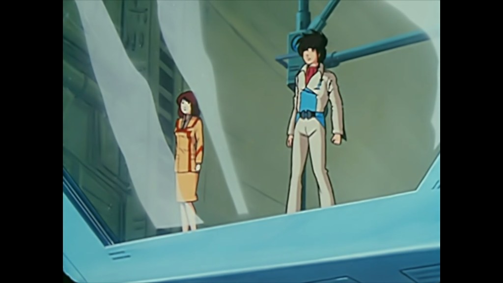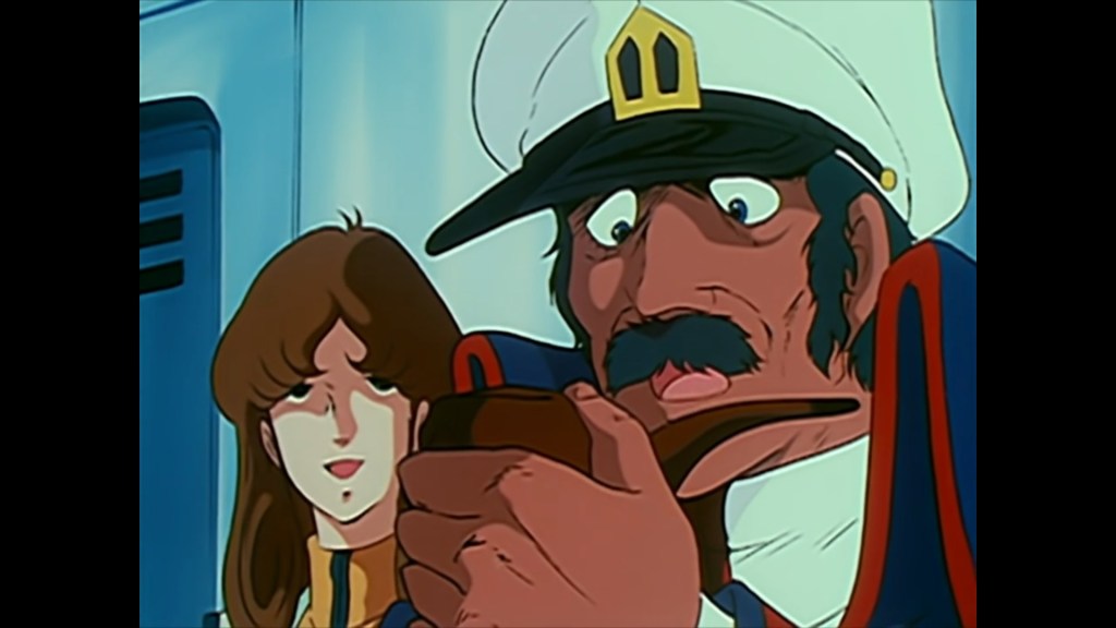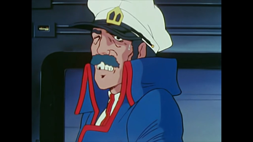 To further the parody, Sammie (Shammy) tells Captain Gloval there is no-smoking on the bridge in this episode which is also later repeated with Colonel Maistroff and Captain Gloval in Episode 15. Sammie will go on to provide comic relief for the entire series. Captain Gloval and Sammie represent the first half of the plant-and-payoff storytelling technique. They plant or setup events here for a later payoff. In addition, Captain Gloval’s head collisions as well as Sammie’s reprimands help humanize Captain Gloval. The audience is able to identify with him as clumsy and henpecked. Also, by removing any supernatural aura from his character, there is much more foreboding tension relating to the success of the SDF-1 and her crew.