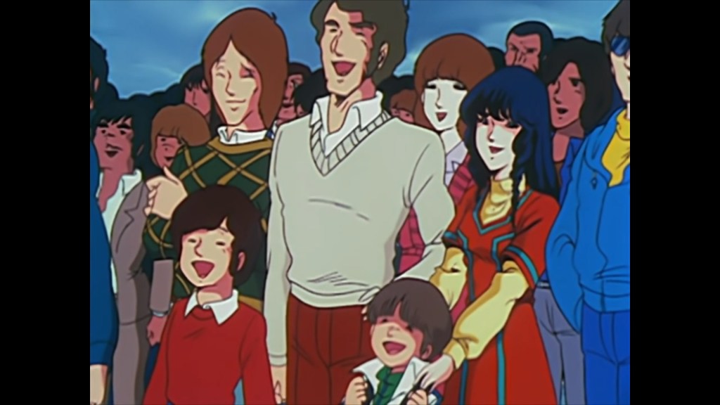 The series was originally proposed to be 52 episodes in length but underwent several rewrites trimming the outline from 52 to 48 to 39 to 23 to 26 episodes in its early development. However, SDF Macross was so successful upon debut, the sponsors were reportedly convinced to fund 10 additional episodes bringing the total number of episodes to 36. While the photo album imagery was likely pre-planned, the additional episodes possibly allowed its exposition to be pushed to episodes 28 and 36, highlighting and resolving the final and new post-apocalyptic reconstruction story arc. This final nine episode epilogue was written after the series was already in production. SDF Macross enters the metafictional realm of reality as it implies the entire series is a recollection existing in Lisa Hayes’ (Misa Hayase’s) mind as she peruses Rick Hunter’s (Hikaru Ichijyo’s) photo album.
