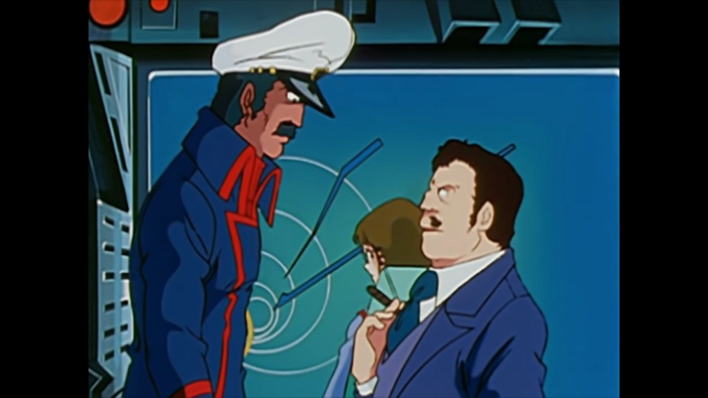 Chief Engineer Emil Lang (unnamed Chief Engineer in SDF Macross) informs Captain Gloval the fold system has vanished into thin air. This is one of a series of accidents involving the SDF-1 listed in the synopsis for Episode 19. See List 10 at the end of this essay for a summary of all the accidents and solutions involving the SDF-1.