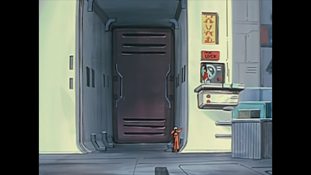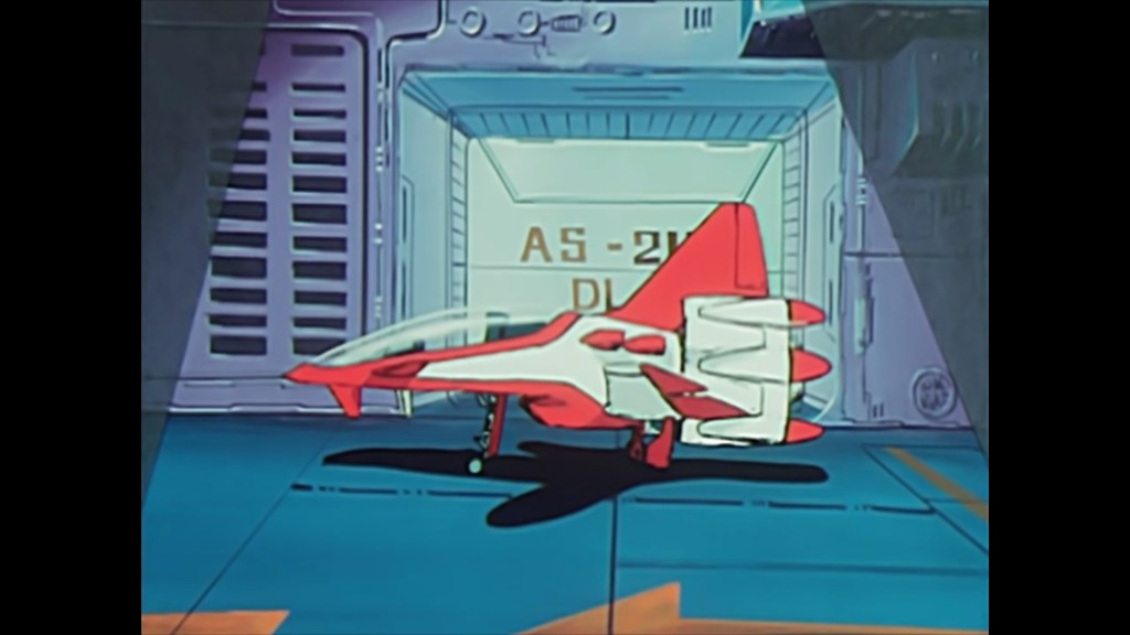 Roy has moved Rick’s fanjet inside the SDF-1. This is the plant portion of a plant-and-payoff plot device. The payoff will be the following events of this episode involving the fanjet. The fanjet also assists this episode’s story arc, tension, and dynamic rhythm. Rick’s reunion with his plane is an emotional climax setting the stage for the falling action and resolution of this episode which neutralizes the fanjet’s symbolic sense of freedom.