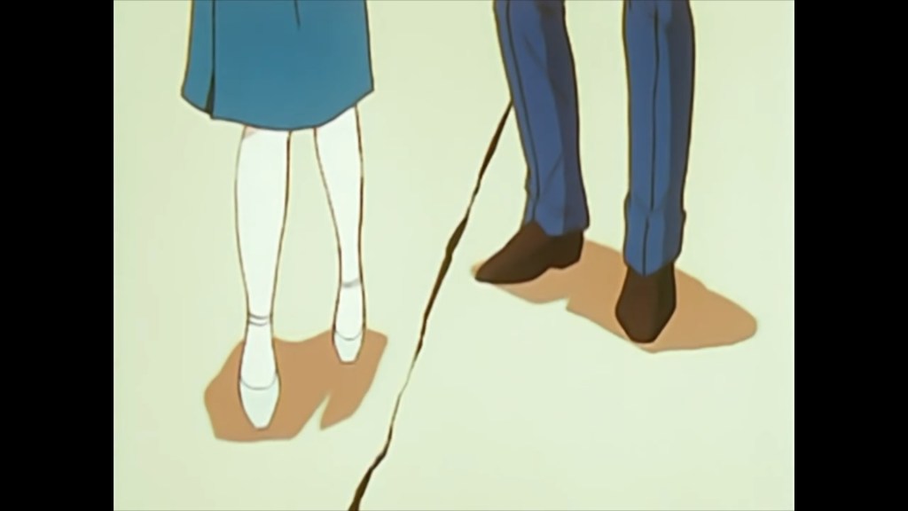 Minmei and Rick break a pipe and are each soaked. This demonstrates the “Romantic Rain” trope. Minmei showers and later in the Remastered versions of Episode 38, 39, 43, 46, and 48 of Robotech (Episodes 1, 2, 6, 9, and 11 of SDCSC) Dana Sterling (Jeanne Francaix) will shower. Dana’s showers are less romantic and emphasize introspection and fan service. Breaking the pipe may be a double entendre or innuendo as Minmei helps Rick to release the pressurized, warm, and cathartic fluid. Previously, Minmei burned her hand on the hot, firm pipe. Minmei will also shower in DYRL. A sense of symmetry with this scene will be achieved in Episode 12: Big Escape when Rick and Lisa fall into reservoir liquid (cooling water) possibly symbolizing “Romantic Rain.” In Episode 12 water is seen dripping and the echoing sound effects of drips resembling rain is audible. Additionally, while never animated, Rick and Lisa’s emergence from the water is a form of rebirth, maturation, and baptism for these two characters. Unseen but described, Lisa explains her rescue of an unconscious drowning Rick from the water symbolizing Rick’s forced or assisted premature romantic development. In Episode 33: Rainy Night Roy and Claudia and Rick and Lisa will experience more direct and conventional versions of the “Romantic Rain” trope.