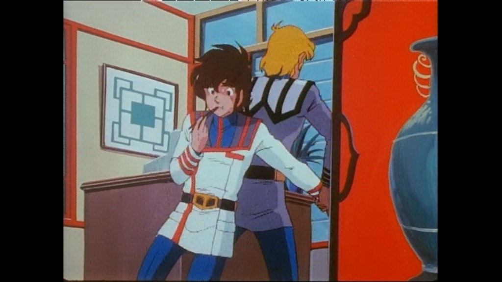 This series can be viewed as didactic children’s media as it teases out the nuances of meeting aggression with violence. Rick’s character arc will evolve from pacifism to reluctant militarism. Lisa will question her personal philosophy in Episode 16 and in several comparisons between herself and the Zentreadi in Episodes 12, 21, and 23. In the Robotech version of this episode Captain Gloval delivers a monologue mourning Earth’s short lived peace. Later, Lynn Kyle will illustrate alternatives to war, and Admiral Hayes (Takashi Hayase) will pay the ultimate price for his militaristic stance. These plot elements form a cohesive case for the restrained use of force.