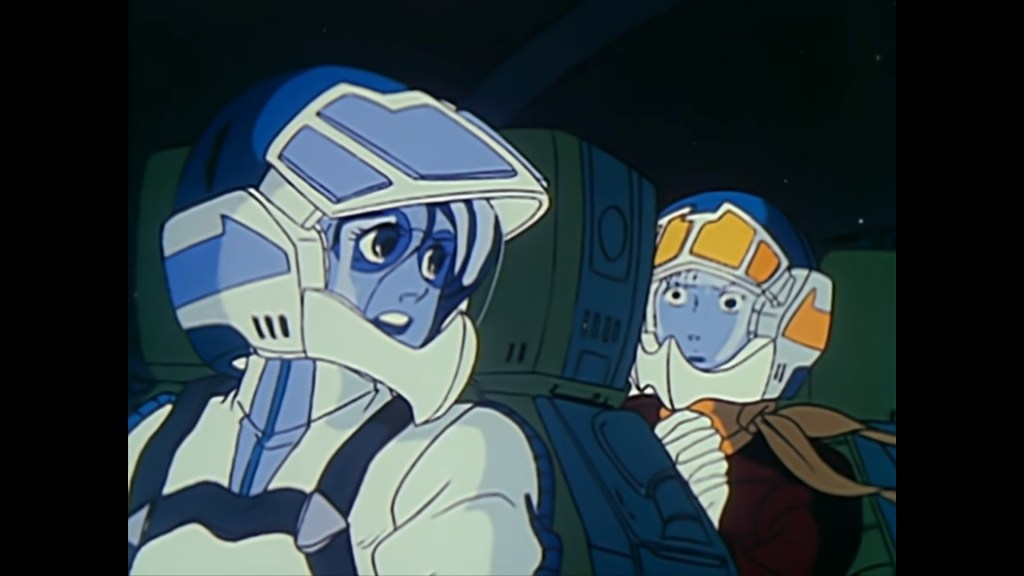 Rick’s failure at maneuvering his battloid is echoed in Captain Gloval’s attempt to launch the SDF-1. Rick and Captain Gloval reflect each other in these juxtaposed scenes. The viewers are able to identify with Rick on a personal microcosm level while Captain Gloval’s experience portrays the same event on a macrocosm level. Roy is a senpai or big brother to Rick, who in this scene, is akin to a younger brother with a skinned knee. Likewise, Captain Gloval is a father or big brother to the bridge crew when he recommends using the main booster rockets (main rockets) to launch. Rick’s veritech and the SDF-1 reflect one another as well as Roy and Captain Gloval in overlapping parallelisms. The motif of representing the same event on both a humanized microcosm level and a more abstract macrocosm level will repeat many times in this series. In fact, the origin of the very title Macross has multiple parallelisms as it is a play on the Japanese words Macbeth, Macro, and Across. Any parallel themes between the broadcast episodes of SDF Macross and Macbeth are likely unintended by the series’ creative team. However, Dolza may resemble Macbeth as a central theme of the theatrical play is blind ambition leading to the destruction of the self and others. Macro refers to the immense size of the mecha and ships, and Across refers to the distance traveled. Western audiences might project the concept of a heavy burden onto the word cross if seen in a Christian context.