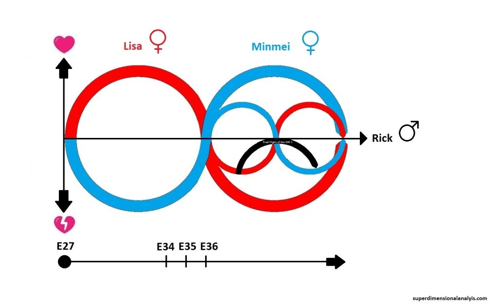 In Episode 11 Lisa will kiss Rick for purposes of intelligence gathering, in Episode 15 Minmei will sit on Kyle’s lap, and in Episode 27 Lisa will sit on Rick’s lap which are all examples of intimacies of convenience.