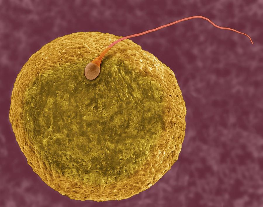 A scanning electron micrograph of human gametes at conception