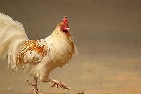 A chicken demonstrating digitigrade locomotion. The knee is hidden by feathers and it is the ankle joint which is most prominent. Chickens have a tarsometatarsus bone and walk on their digits or toes.
