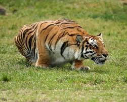 A tiger exhibiting stalking behavior. Big cats are one component of a dragon’s hybrid nature.
