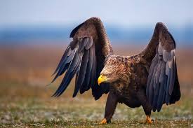 A bird of prey with raised wings