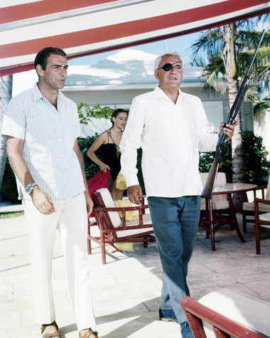 James Bond villain Emilio Largo as seen in the 1965 film Thunderball. Breetai’s faceplate somewhat resembles the eye patch.