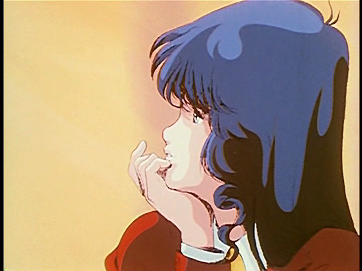 Miriya Parina Sterling (Milia Fallyna Jenius) as seen in Episode 24. The knife may be symbolic of a male anatomical pseudo appendage. In Robotech, if female Zentreadi are an updated version of Amazons, all artifice and pretense of symbolism is eliminated and literally manifests as the Praxians in the novelizations by Jack McKinney. The pattern of exclusively female gender groups and the surrendering of tools or instruments continues in Robotech with the character Musica and her cosmic harp in episodes 37 to 60 of the second Robotech war. Refer to part 2 of this photo essay for examples.