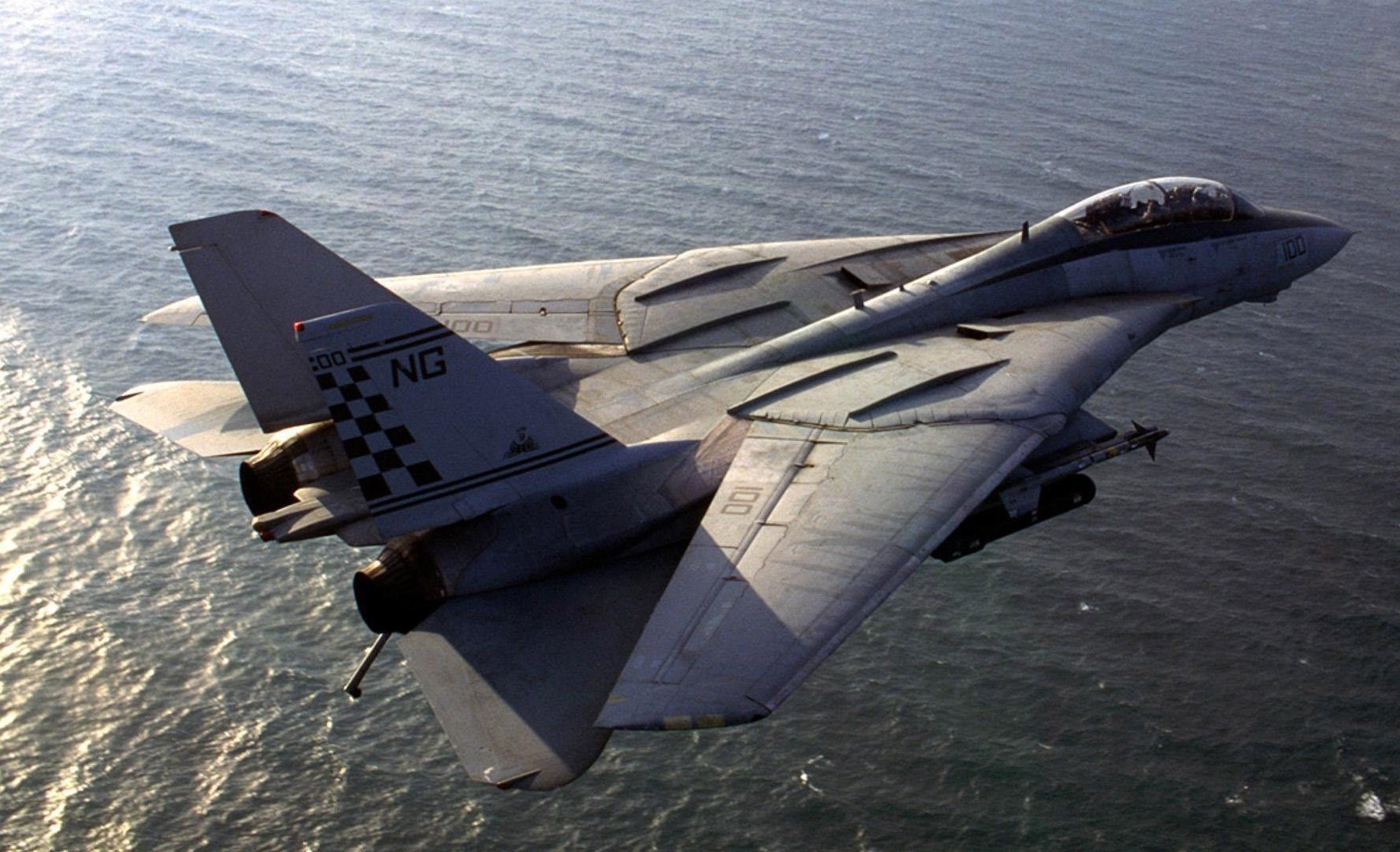 An F-14A Tomcat of the VF-84 Fighter squadron of the United States Navy with its 1970’s color scheme. The aviation unit was nicknamed the Jolly Rogers.