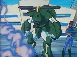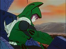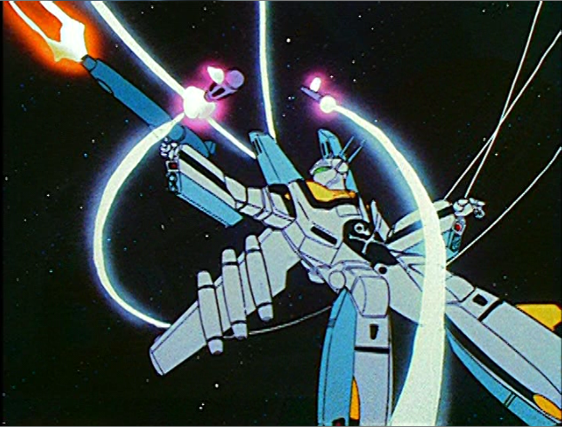 Breetai (Britai Kridanik in SDF Macross) attacking Rick (Hikaru Ichijyo) as seen in Episode 11. Mecha itself may be the modern equivalent of medieval armor.