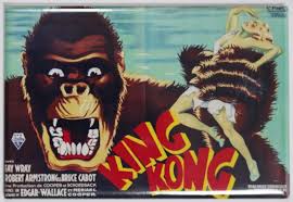 A promotional image for the 1933 film King Kong. King Kong is shown clutching the Ann Darrow character portrayed by Fay Wray.