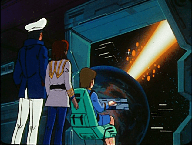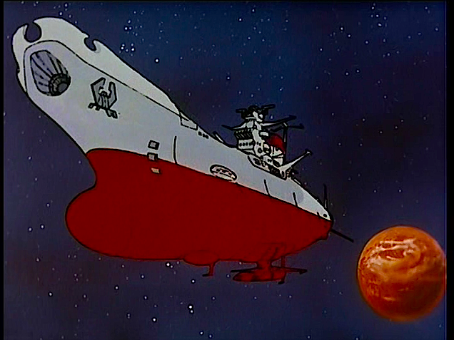 The Space Battleship Yamato from the 1974 animated series Space Battleship Yamato. The initial concept of what later became Super Dimension Fortress Macross was influenced by investors to create a parody of this series. The SDF-1 as well as the Prometheus and Daedalus somewhat resemble the Yamato ship concept.