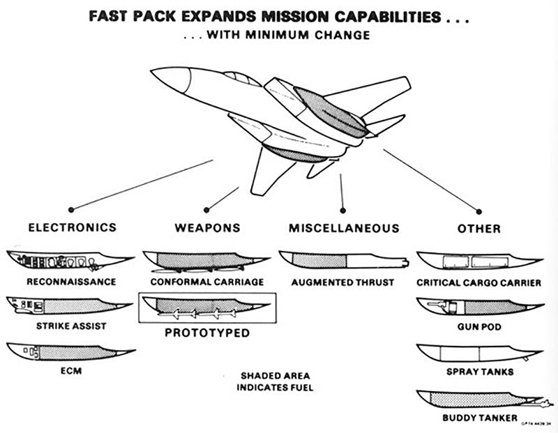 FAST Packs (Fuel and Sensor Tactical) existed for the F-15 but mounted under the wing along the fuselage. The term has since been replaced by Conformal Fuel Tanks (CFTs).
