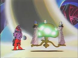 Robotech also proposes nature extends beyond the surly bonds of Earth and encompasses the entire known universe. Furthermore, Robotech moves beyond nature alone and comments on the physical structure of the universe itself. The ships travel by folding space. Haydon may be Father Time as he always was, is now, and forever shall be. Each planet in Robotech may have its own unique Mother Nature. There are also Children of the Shadow, Disciples of Zor, and the shapings. These could all be allegories for sprites, nymphs, fairies, and naiads personifying nature and mysticism. Haydon aspires to transcend the universe and the Regis seems to have transfigured her substance if not wholly transcended to another place and time, universe, or plane of existence. The imagery of inorganic sentries appearing in Episode 37 is an invention created during Robotech’s adaptation from Super Dimension Cavalry Southern Cross (SDCSC). This footage was taken from Episode 12 of SDCSC and shows the reflection of beings from the Zor race (adapted as Robotech Masters) on a video monitor display screen as they watch the playback of espionage footage. Episode 12 of SDCSC was adapted to become Episode 49 of Robotech and this same scene remains in that adaptation. Thus, it can be viewed in its original context in Episode 12 of SDCSC and Episode 49 of Robotech.