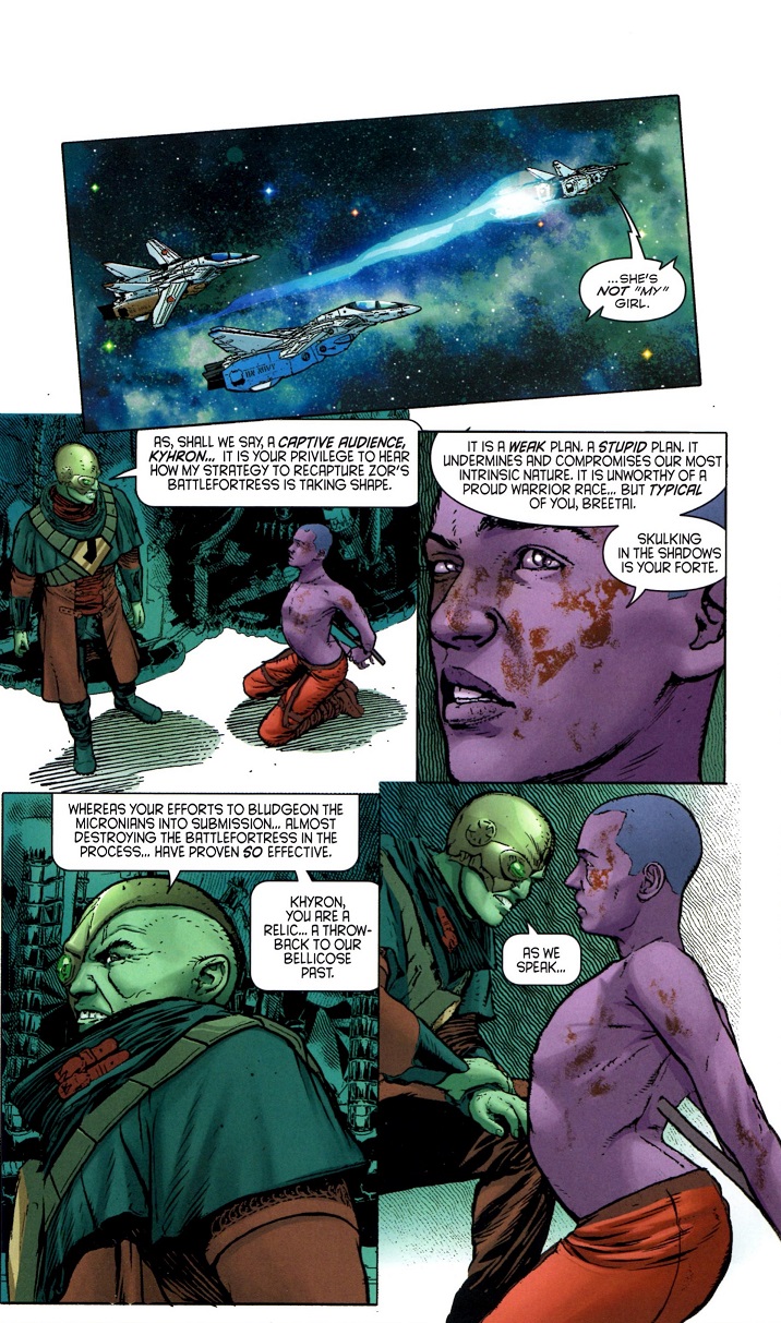 On the subject of clones the first Robotech war depicts the Zentreadi as clones and their ability to be micronized or restored to full size. The second Robotech war portrays clones and dismembered body parts of clones. The Invid are protoplasmic. The Robotech comic Clone/Mordecai involves odd clones referred to as spleens. They seem to be subnormal clones created for organ harvesting. There is a vague Goth erotica underpinning the entire Clone comic series. The spleens almost seem to be fetishized gimps or submissives within a sadomasochistic framework while the main characters are the doms. The Invid also portray a sort of BDSM (bondage discipline/dominance sadomasochism/submissive). The Regent and Regis seem to enjoy abusing their subordinates. The new Titan comic veers into BDSM in disciplining Khyron with a spreader bar restraint illustrated in Issue 7. There seems to be a running theme professing the benefits of healthy physical manifestations of love in Robotech while the villains are warped in this capacity.